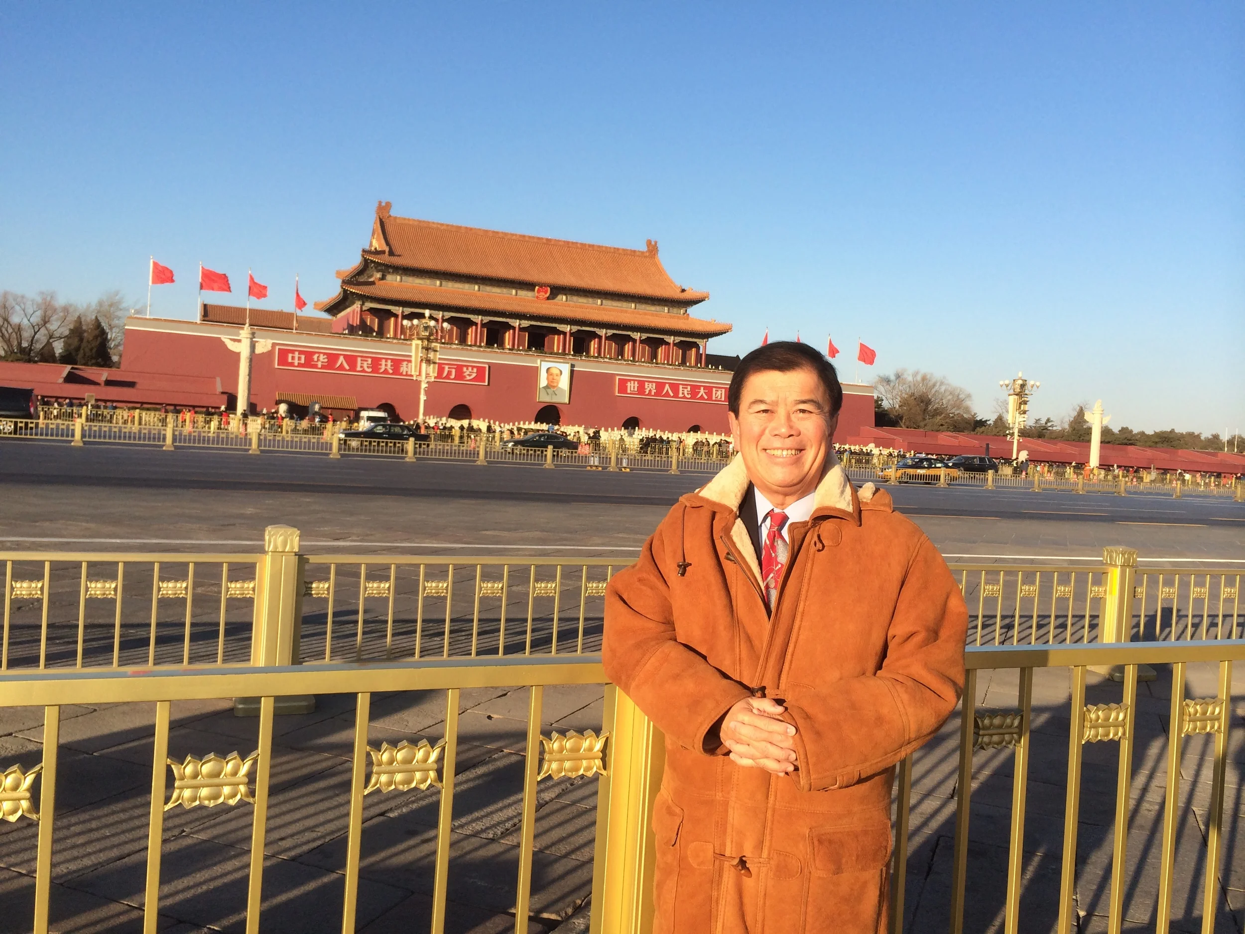 Congressman David Wu (D-OR 1999-2011) in Tianmen Square in Beijing, China during a recent business trip. He also gave pro bono talks at Tsinghua University and Jilin University, and negotiated the 2015 U.S. China Youth Space Exchange Program with the Chinese Society of Astronautics. He started the program in 2014 after two years of negotiation with CSA.